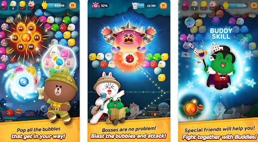 The gameplay screenshots for LINE Bubble 2 include animated animal characters who have defined emotions with visually bright expressive graphics and illustrations. The game is an uninhibited color match game with a variety of bubbles to burst and many rewards as you play. It has beautiful graphics. In the beginning, it has a preview that tells a cute story of Brown the Bear on an adventure and goes missing so in order to find him, Cony goes off on a journey of adventures while coming across fun and interesting tasks. The game does download data between levels. This is an easy and fun game. Just throw the bubbles that match the colors in threes. It is entertaining and fun for all ages.