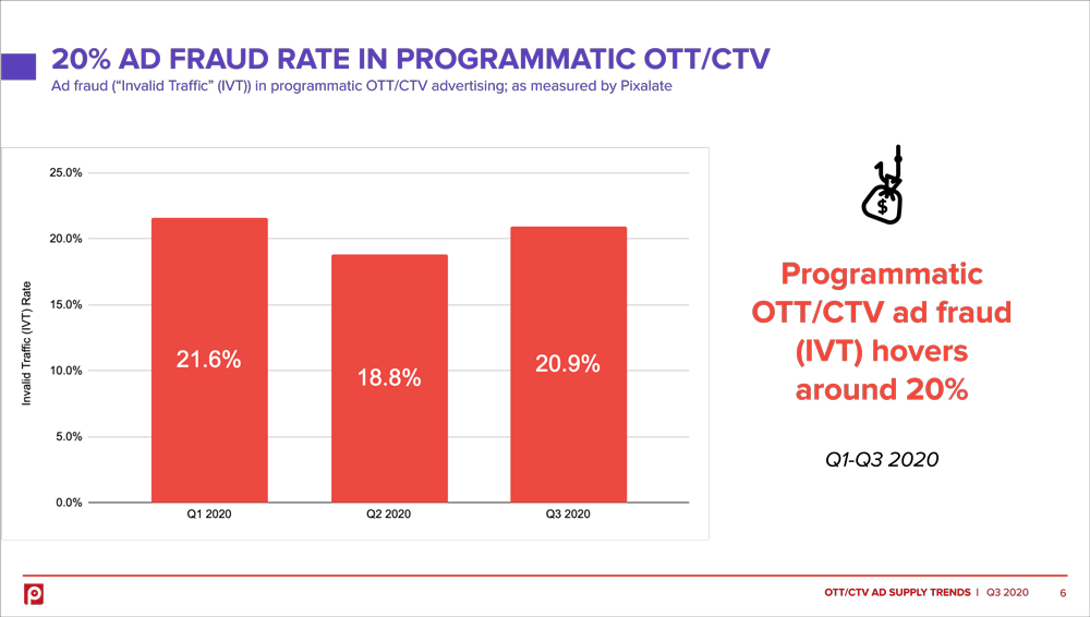 - Q3 2020: Invalid traffic climbed back to 21% in programmatic OTT/CTV