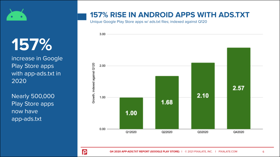 - There was a 157% increase in the number of Google Play Store apps with app-ads.txt in 2020