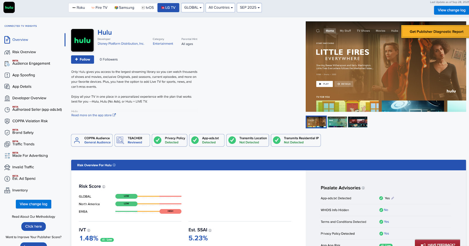 Pixalate eliminates this vulnerability with the market's first and only Bundle ID-to-App-Store-ID mapping system. With the addition of all 4,630 LG Content Store applications to its CTV app database, Pixalate now delivers authenticated Bundle ID mappings that equip CTV buyers and inventory quality teams to verify app authenticity, measure fraud risk, and remove unauthorized LG CTV inventory on their network and campaigns.