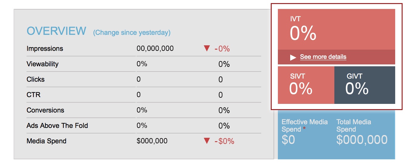 Monitoring all forms of invalid traffic, from general to sophisticated, is the first step in understanding how and what types of fraud are being committed. In order to further support this key phase, we have added Invalid Traffic (IVT) metrics to the Fraud and Non-Fraud reports in our Analytics Dashboard.