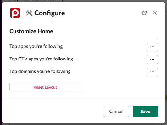 Your MRT Slack home page can show you a summary of your top follows, as well as convenient links to view them in the MRT console when you've connected your account.